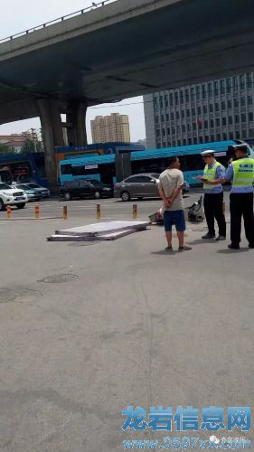 就在他們停車不久,從高架橋上突然掉下了兩個床墊,受害者躲閃不及,被砸了一下,血流滿地,電動車也橫在了一邊。