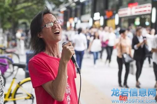 放定音響,駐立街頭,鐘永明以一曲《海闊天空》開始了他的表演。唱到動情之處,他微微閉眼,臉色漲紅,脖子上的青筋一跳一跳。