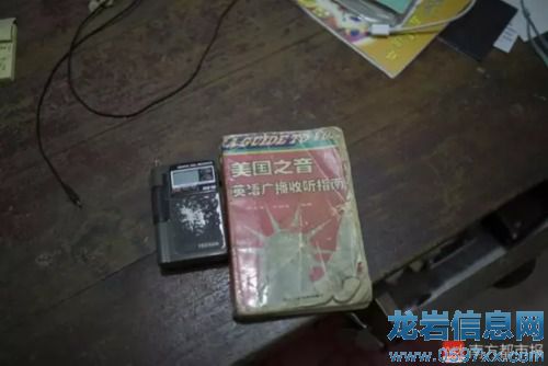 鐘永明練習英文時反復看的書和早已陳舊的收音機。