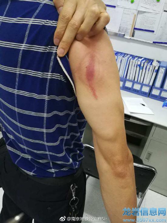 陸先生連忙撥打110報警,而周圍的乘客們也試圖幫忙把他拽出來,但只要一使勁,陸先生就喊疼。一直到列車行駛到大行宮站,列車停靠時間稍長,有下車乘客請來站臺工作人員,手動打開夾住陸先生的車廂門,才將他的胳膊“搭救”出來。算起來陸先生從馬群到大行宮,被夾了7站路,好在胳膊沒有大礙,但是被夾的部位起了一片淤血。