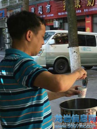 一大早,膏藥鋪店主鄧先生就在為路人和附近工作的環(huán)衛(wèi)工人分發(fā)清涼爽口的綠豆湯。