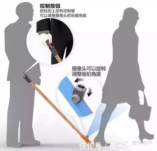 這個拐棍底部裝有高清旋轉(zhuǎn)攝像頭,拐棍頂部手拿的地方就是攝像機開關(guān),可以隨時遙控指揮攝像頭的鏡頭方向,這樣就能更加徹底地完成偷拍。