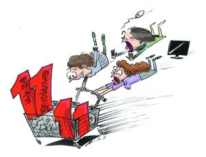 為了搶貨,丁小姐說她可是動員全家齊上陣,把能用的家伙都派上了場:老媽用電腦,老公用iPad,她自己則是左右開弓,左手手機右手電腦。“想買的東西,都是我‘雙11’之前就做好功課、放到購物車里的。”在瞌睡蟲的侵襲中,丁小姐向記者講述了折騰的“雙11”之夜:昨晚11點40分,全家人就打開了搶貨工具,嚴陣以待。0點一過,她和老公、老媽就開始刷新系統。登錄的人太多,iPad和手機都刷不動,只有老媽手里的電腦還比較給力,12點后已經是新價格。