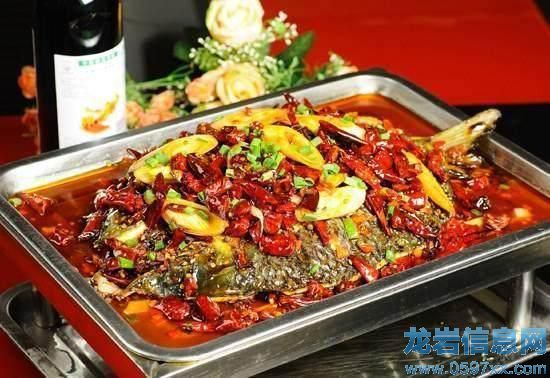2.勺內放油燒熱,將魚提著尾放油中炸至呈金黃色,取出放烤盤中,把肉片、蔥段、姜塊、醬油、味精、料酒澆撒在魚身上,倒上鮮湯入爐烤制20分鐘左右,取出放在魚盤中,上桌時,澆在烤魚原汁即可。