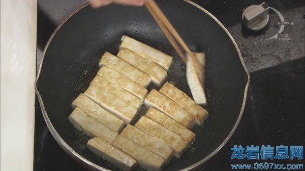 步驟1:北豆腐切條,下鍋煎至兩面金黃色后撈出。