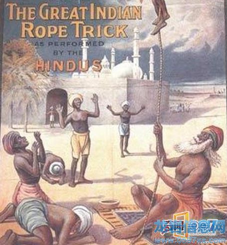 然而,如今我們能夠看到關于印度通天繩(又名神仙索)的幻術記載,仿佛他們掌握了秘術之門的鑰匙,在天地之間有了生命循環(huán)更新和生命力交接傳遞的能力。這個魔術有很多版本。其中一個版本中,一位印度苦行僧人把長繩子的一端緩緩升到空中,最后消失在云霧里。繩索始終保持筆直,一個小男孩向上爬,最后也消失在云霧里。接下來的情形令人驚心動魄,突然,男孩的一只胳膊、一條腿從空中落了下來。最后他的肢體被放進一個籮筐,繩索也隨之落在了地上。最后,男孩卻從羅框里站起來,安然無恙。
