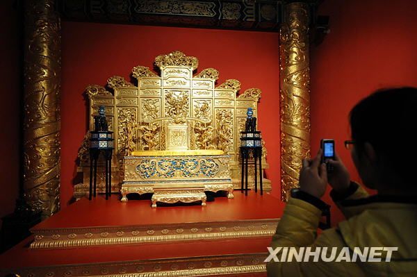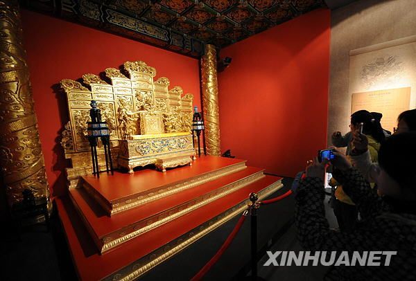 2月18日,人們在明孝陵博物館新館內(nèi)參觀明朝開國皇帝朱元璋登基的“寶座”。