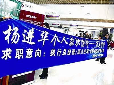 “求職人那么多,怎樣讓招聘單位看中你?”楊進(jìn)華說(shuō),“我想到了做求職演講。”來(lái)南京第二天,他就做了一幅6米的橫幅,寫清求職演講的題目和意向職位。“我打算做至少七天演講,每場(chǎng)至少2小時(shí)。如果經(jīng)濟(jì)條件允許,我打算持續(xù)30天,直到有用人單位注意我為止。”不過,人才市場(chǎng)拒絕了他的演講申請(qǐng)。三四家企業(yè)均對(duì)他的中專文憑所保留。楊進(jìn)華表示會(huì)通過其他方式彌補(bǔ)。