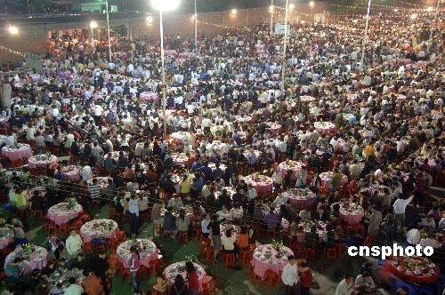 二月十九日中國農歷正月二十五日晚,廣東順德連杜村二萬多名鄉親和親朋好友歡聚一堂,共品“生財宴”,場面十分壯觀。每年此時舉辦“生菜會”(諧音“生財”),是當地的傳統習俗。中新社發 梁永強 攝