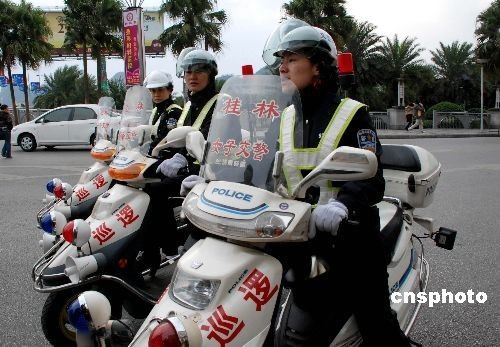 2月20日,廣西桂林警方開展民眾拍攝交通警察執勤活動,讓民眾零距離接觸交警的執法工作。中新社發 周利朔 攝
