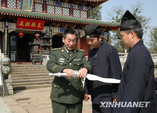 2月20日,消防人員正在指導(dǎo)“道士消防隊(duì)”隊(duì)員使用滅火工具。新華網(wǎng)2月21日電 位于江西省鷹潭市的龍虎山,鑒于道觀等古建筑均為木質(zhì)結(jié)構(gòu),防火任務(wù)繁重,當(dāng)?shù)貙iT成立了“道士義務(wù)消防隊(duì)”,配合消防部門負(fù)責(zé)道觀內(nèi)外的防火、滅火工作,并經(jīng)常邀請(qǐng)當(dāng)?shù)叵拦俦祥T指導(dǎo)消防滅火知識(shí),舉行滅火演練等。新華社記者 胡錦武 攝(本文來(lái)源:新華網(wǎng) )
