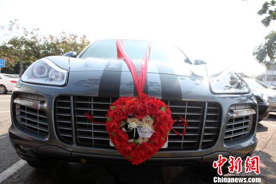 圖為婚車車頭的“心”狀裝飾。 董會峰 攝