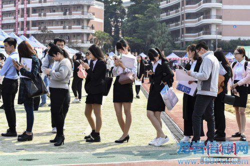 資料圖:排隊等待面試的求職者。中新社記者 陳驥旻 攝