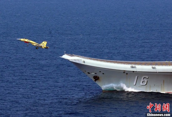 11月11日,遼寧艦結束本航段試驗試飛和訓練任務,返回某軍港。自10月23日出航以來,遼寧艦在本航段的試驗試飛和訓練中,先后完成殲-15艦載戰斗機試飛、艦面試驗、艦載戰斗機著艦指揮員培訓、試飛員飛行訓練等試驗試飛任務和訓練科目。首次實際驗證了艦面所有起飛位的保障能力和流程,首次在遼寧艦上完成殲-15艦載戰斗機發動機拆裝試驗等,取得了一系列試驗試飛和訓練成果。圖為殲—15艦載機從短距離起飛位滑躍起飛。中新社發 張凱 攝