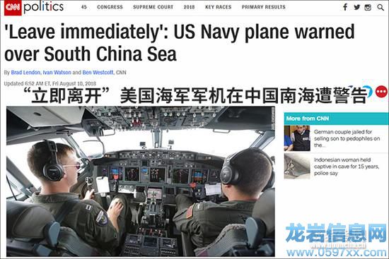 CNN網站10日報道補充說,美國海軍飛機在16500英尺(約5000米)高空飛越了渚碧礁、永暑礁、美濟礁和赤瓜礁,期間收到來自中國的警告多達6次。