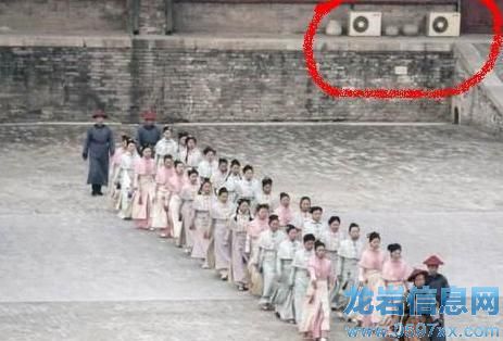 拍攝清朝劇的時候,鏡頭竟然照到了兩臺空調,后期剪接都不注意下嗎,好歹也給個馬賽克吧。